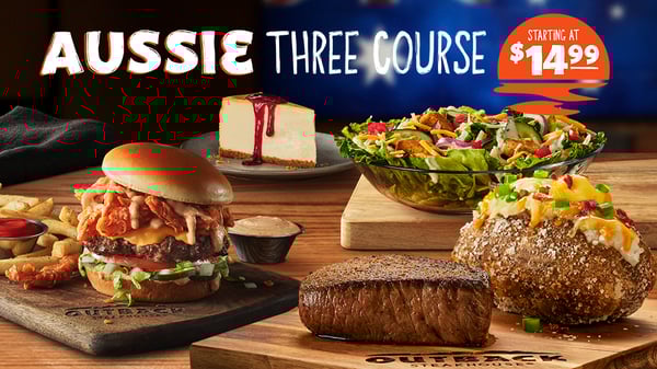 AUSSIE 3-COURSE MEAL STARTING AT $14.99Big day? Boring day? Doesn’t matter, mate. When you can score a 3-course feast starting at just $14.99, every day’s a reason to celebrate. Full-on flavor, start to finish, no special occasion required.