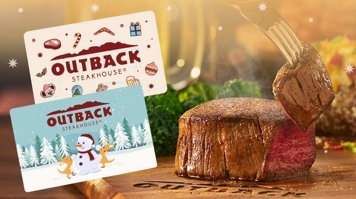 Digital Gift Cards for Family, Friends & StaffGive the gift of steak night and Aussie spirit. Outback holiday gift cards are perfect holiday gifts for Mom, Dad, your best mate, teachers, or the whole crew at work. Send an online gift card in just a few clicks and call it gifting done, mate.
