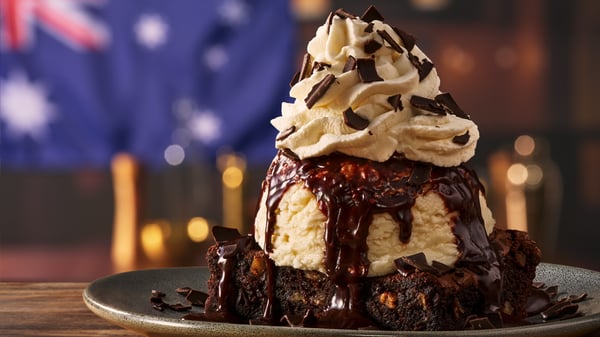 CHOCOLATE THUNDER FROM DOWN UNDERStart fresh the delicious way with an extra-generous pecan brownie topped with rich vanilla ice cream, warm chocolate sauce, chocolate shavings and whipped cream.